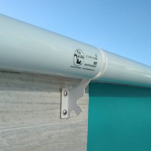 O kit é fornecido completo com suporte em aço zincado com pintura eletrostática a base de poliéster, com formato exclusivo, fixadores em aço inox, acessórios em nylon, Roletes em alumínio com pintura eletrostática a base de poliéster, nas medidas informadas pelo cliente, prontos para serem instalados, sem a necessidade de corte no local quando as medidas forem fornecidas corretamente.